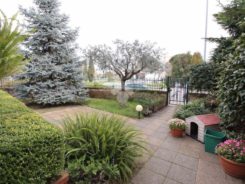 La soluzione presenta un ingresso indipendente su giardino privato, disimpegno, ampio salotto con camino, cucina abitabile con uscita su terrazzo pavimentato, bagno e zona lavanderia.