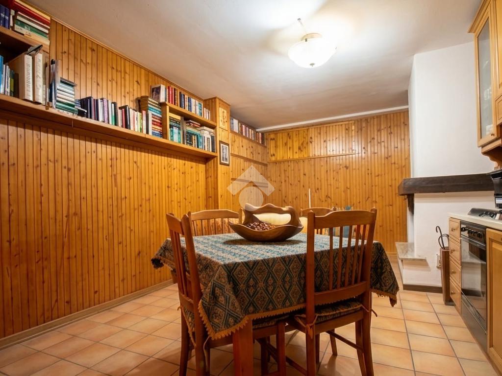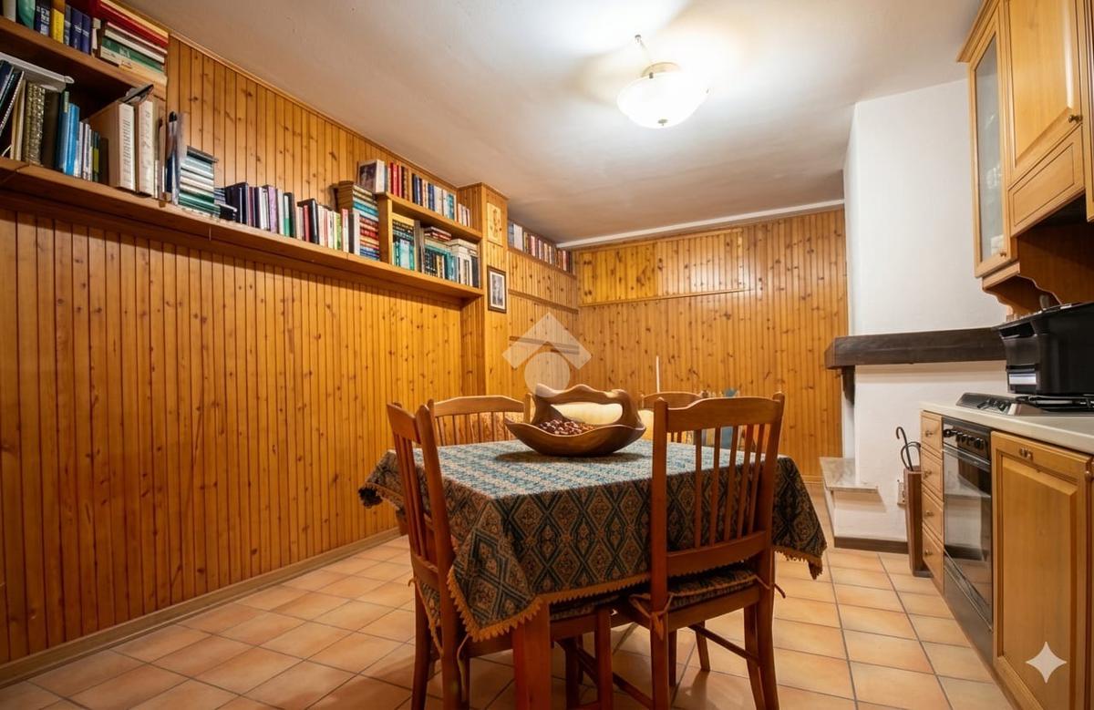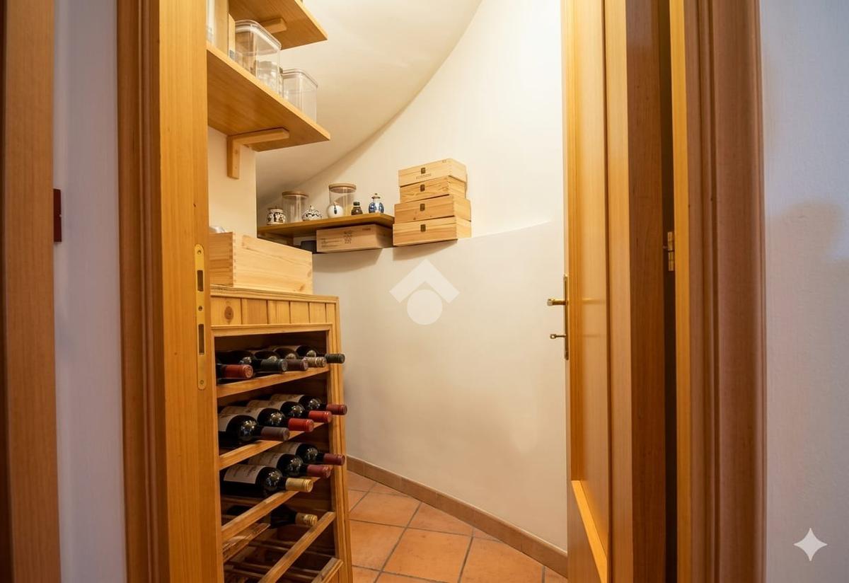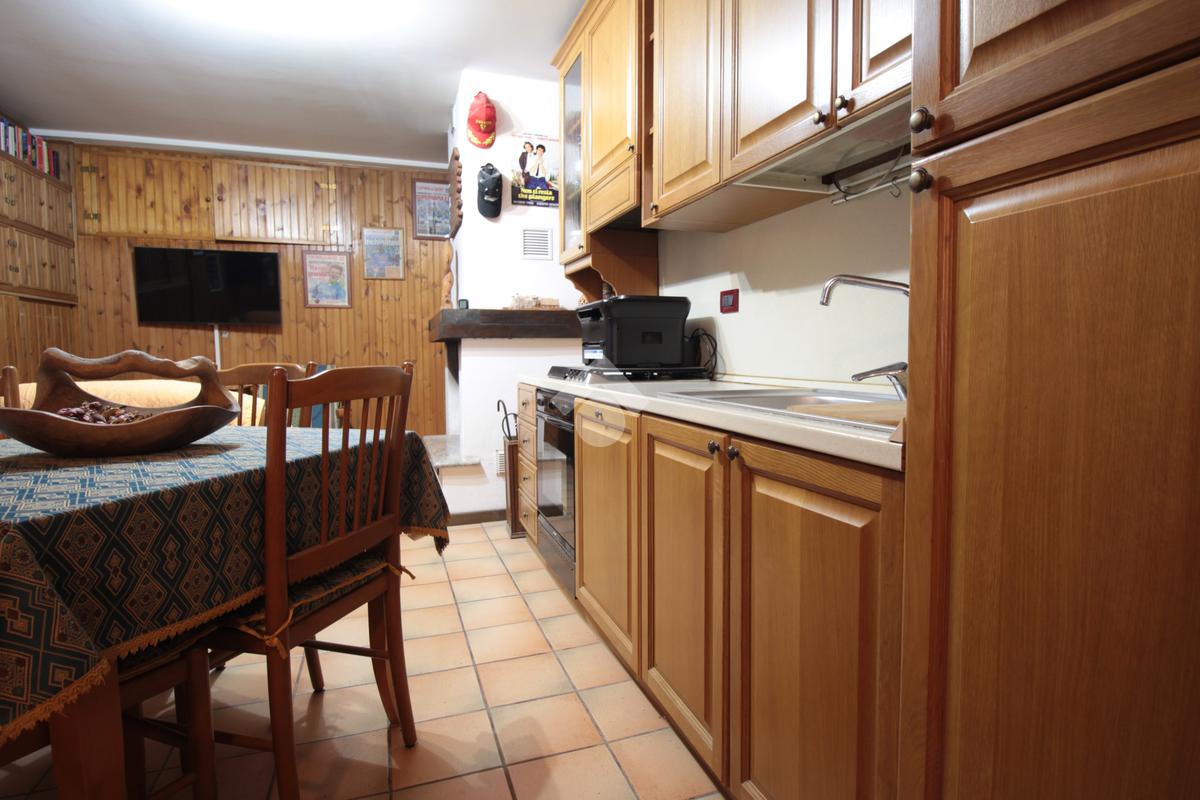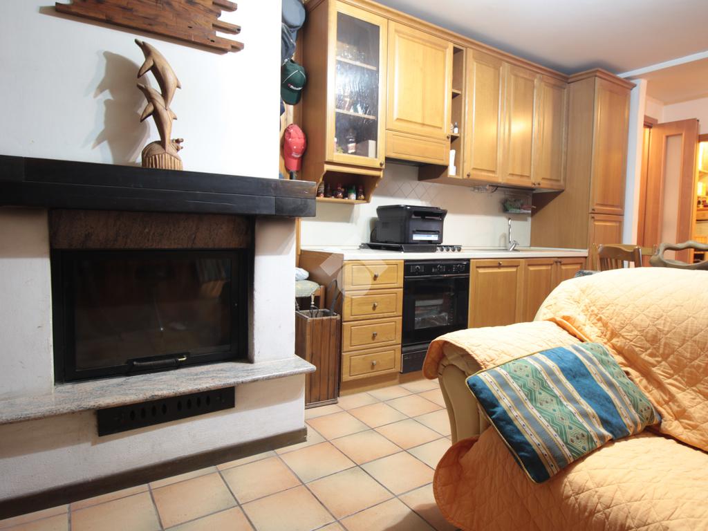 Completa l'abitazione una taverna con cucinotto e camino, dotata di servizio igienico con ripostiglio ed un garage.